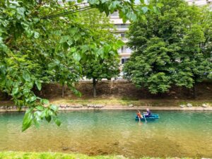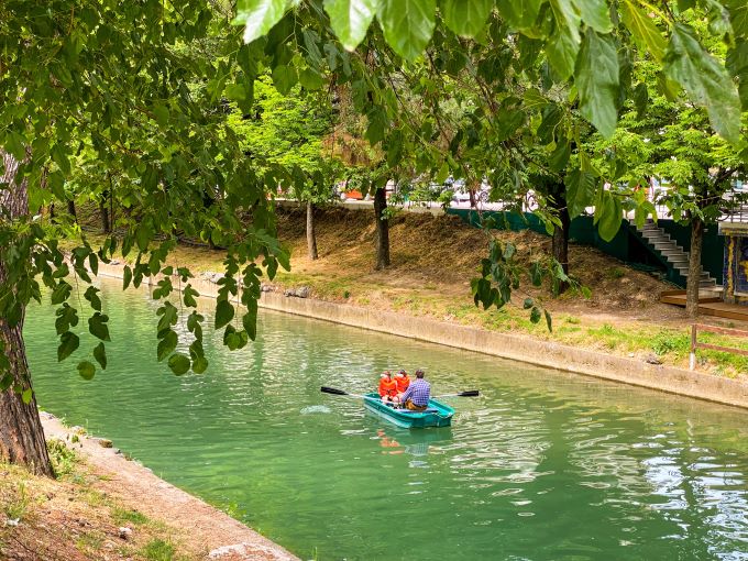 βαρκάδα μέσα στο ποτάμι. Κυρίως μικρά παιδιά, με τη συνοδεία των γονιών τους και με τα