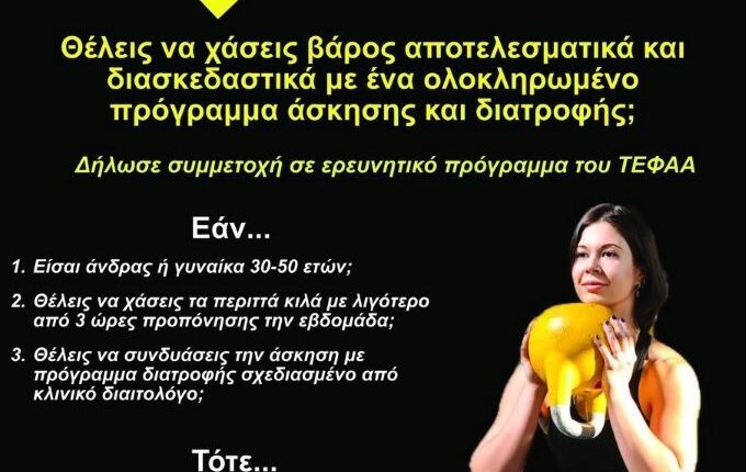 Ερευνητικό πρόγραμμα για τη σχέση άσκησης και διατροφής ως προς τη μείωση του