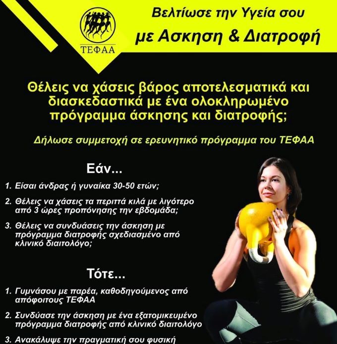 βάρους και τη βελτίωση της υγείας, υλοποιεί το ΤΕΦΑΑ της ΣΕΦΑΑΔ του Πανεπιστημίου