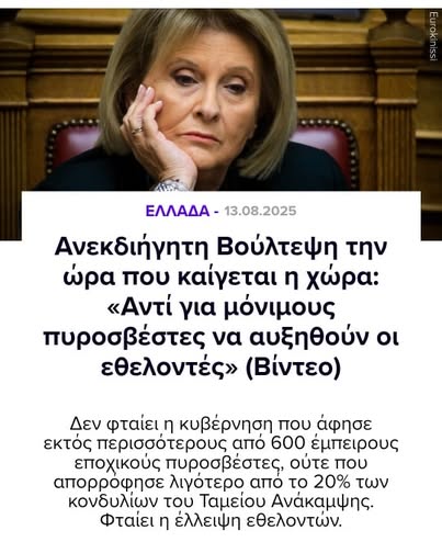 «Δεν έφτανε στους ανθρώπους της πυροσβεστικής και στους πυρόπληκτους ότι έμειναν αβοήθητοι, έχουν και την κυρία Βούλτεψη να βγαίνει στα κανάλια και να τους εξοργίζει ακόμα περισσότερο.
