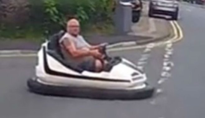 Οι εικόνες από το βίντεο που ακολουθεί δεν είναι κάτι που βλέπεις καθημερινά. Αυτό σκέφτηκε ένας 34χρονος Βρετανός που κατέγραψε το περιστατικό στο Χάρλοου του Έσεξ, στην Μεγάλη Βρετανία και στη συνέχεια το μοιράστηκε με τους φίλους του στο facebook. Ένας κάπως ευτραφής κύριος με αμάνικο μπλουζάκι στέκει ατάραχος μέσα σε ένα συγκρουόμενο αυτοκινητάκι στο σταυροδρόμι, ελέγχοντας για διερχόμενα αυτόκίνητα.