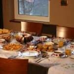 Φρέσκο βούτυρο σε ζεστό ψωμί, πίτες χωριάτικες, αυγά της περιοχής, μέλι και μαρμελάδες δικές τους, σπιτικά κέικ και τσάι του
