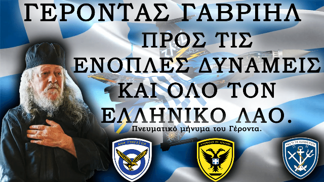 Ο Χρήστος Βασιλειάδης, (διαπιστευμένος δημοσιογράφος του ΥΠΕΘΑ) κατά την επίσκεψη του στο Άγιον Όρος βρέθηκε στο Κελλί του Γέροντα Γαβριήλ. Συνομίλησε μαζί του και ζητήσαμε την ευλογία να καταγράψουμε ένα μικρό πνευματικό μήνυμα για τα στελέχη των Ενόπλων Δυνάμεων και τον Ελληνικό λαό. Ο γέροντας δέχθηκε και μετά χαράς σας μεταφέρουμε το μήνυμα του