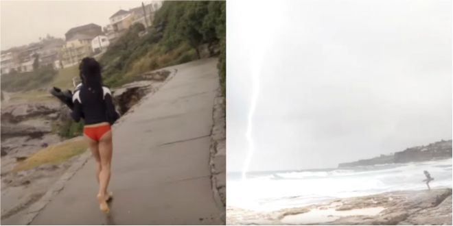 Ο κεραυνός έπεσε ξυστά δίπλα της την ώρα που εκείνος τη βιντεοσκοπούσε δίπλα στο κύμα. Δείτε το απίστευτο βίντεο