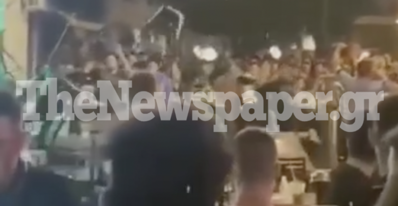 Τα “αίματα” άναψαν γρήγορα και τότε ξεκίνησε ένας κανονικός πόλεμος, με τους υπόλοιπους πελάτες να προσπαθούν να προστατευθούν, καθώς η μία παρέα πετούσε στην άλλη τραπέζια, σταντ, καρέκλες και σκαμπό!