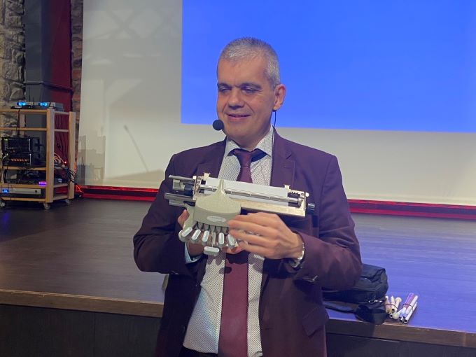 στη γραφή και ανάγνωση Braille, γράφοντας με ειδική μηχανή και ψηλαφίζοντας βιβλία σε