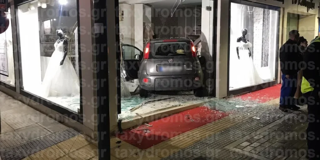 Σύμφωνα με τον διαδικτυακό ιστότοπο taxydromos το αυτοκίνητο που κινούταν επί της οδού Κ. Καρτάλη, υπό αδιευκρίνιστες μέχρι στιγμής συνθήκες, κατέληξε στο εσωτερικό καταστήματος με είδη γάμου.Πιο συγκεκριμένα, το αυτοκίνητο ανέβηκε το πεζοδρόμιο και πέρασε μέσα από την τζαμαρία του καταστήματος προκαλώντας μεγάλες ζημιές.