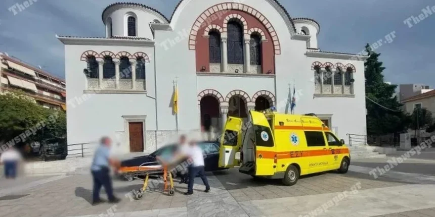 Ασθενοφόρο του ΕΚΑΒ έφτασε στην εκκλησία και μετέφερε τον άνδρα στο Νοσοκομείο Βόλου.
