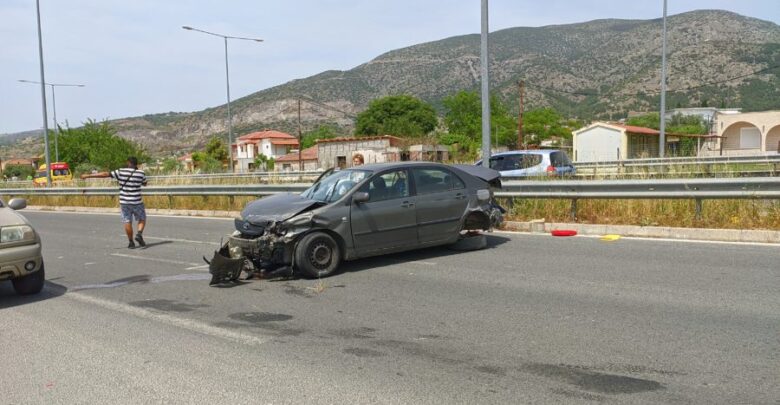 Το αυτοκίνητο έπεσε επάνω στις προστατευτικές μπάρες του περιφερειακού, ενώ η οδηγός του δικύκλου μεταφέρθηκε στο Νοσοκομείο.