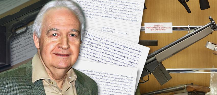 «Σε σπίτι-γιάφκα της 17Ν που αποκαλύφθηκε το 2002 υπήρχε ένα όπλο που ”έκαιγε” ένα συγκεκριμένο πρόσωπο. Το όπλο αυτό δε βρέθηκε. Ποιος το εξαφάνισε; Οι Μυστικές Υπηρεσίες; Κάποιος από τους συλληφθέντες που συνεργάστηκε με τις Αρχές;». Παράλληλα υποστηρίζει ότι υπήρξε πλεκτάνη σε βάρος του από αυτή την ομάδα ανθρώπων που ενορχήστρωσαν μαζί με ξένες και εγχώριες μυστικές υπηρεσίες την καταδίκη του ως αρχηγού της τρομοκρατικής οργάνωσης.