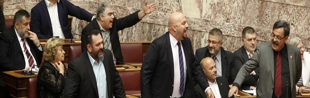 Εικόνες ντροπής εκτυλίχθηκαν μέσα στη Βουλή με πρωταγωνιστές για άλλη μια φορά τους βουλευτές της Χρυσής Αυγής. Φωνές, βρισίδια με την κατάσταση να ξεφεύγει, τον Γιάννη Λάγο να αποβάλλεται και τη συνεδρίαση για το ασφαλιστικό νομοσχέδιο να διακόπτεται άρον άρον!