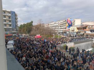 Στην πρωτοφανή για τα Τρίκαλα συγκέντρωση, έδωσαν το παρόν χιλιάδες Τρικαλινοί/νες ενώνοντας τις φωνές τους με τους συγγενείς των θυμάτων που ζητούν δικαίωση των ψυχών των αδικοχαμένων που επέβαιανα στη μοιραία αμαξοστοιχία.