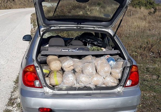 Συγκεκριμένα μέσα στο αυτοκίνητο, που βρέθηκε σταματημένο στην άκρη του δρόμου, υπήρχαν 131 δέματα με ακατέργαστη κάνναβη βάρους 139,150 γραμμαρίων.