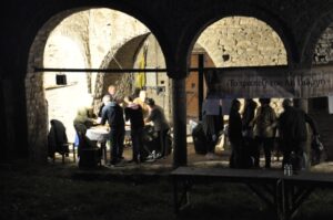 Ο Εκπολιτιστικός Μορφωτικός Εξωραϊστικός Σύλλογος Μυροφύλλου Τρικάλων είχε καθιερώσει τα τελευταία χρόνια το «Τραπέζι το Αη Γιώργη», την παραδοσιακή «φιλοξενία» των προσκυνητών με «καζάνι» με πρόβιο κρέας από δωρεές των πιστών. Μετά από δύο χρόνια απουσίας λόγω της πανδημίας φέτος τα μέλη του συλλόγου από βραδύς συγκεντρώθηκαν στο μοναστήρι και ευλαβικά ετοίμασαν τα σφάγια. Την επομένη το «καζάνι» ευλογήθηκε από τον ιερέα και διανεμήθηκε στους πανηγυριστές με την ευλογία του Αγίου. Το διοικητικό συμβούλιο ευχαριστεί τους Ουρανία Μπαρκονίκου, Αθανάσιο Φαλαγκάρα, Αθανάσιο Μανταλιά, Δήμητρα και Αγγελική Μανταλιά, Μπάμπη Ζάχο, Κωνσταντίνο Μανταλιά, Παναγιώτη Δουβλαντώνη, Βάγια Φαλαγκάρα, Νικόλαο Ράπτη, Αριστοτέλη Ζιώγα, Ελευθέριο Καρακίτσο, Δημήτρη Σουλιώτη, Δημήτρη Μπαρμπάνη, Ευάγγελο Τσιρογιάννη για τις προσφορές τους, καθώς επίσης και όλους τους εθελοντές που εργάστηκαν για την προετοιμασία και τη διανομή.