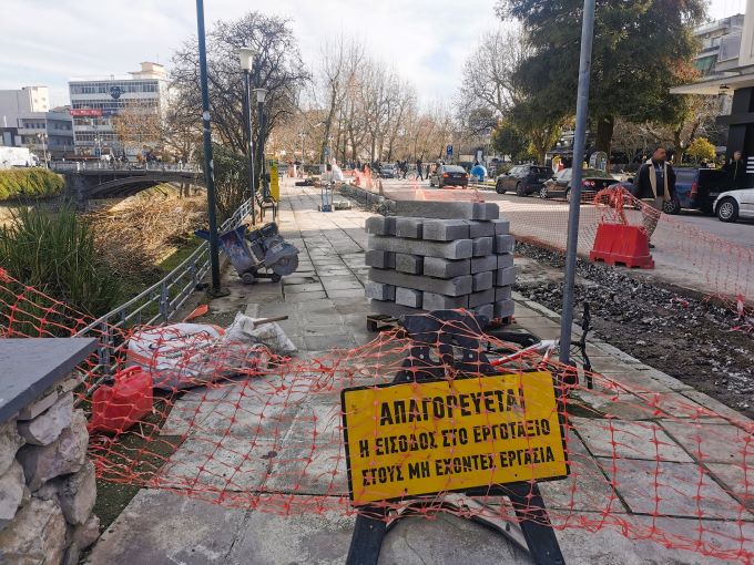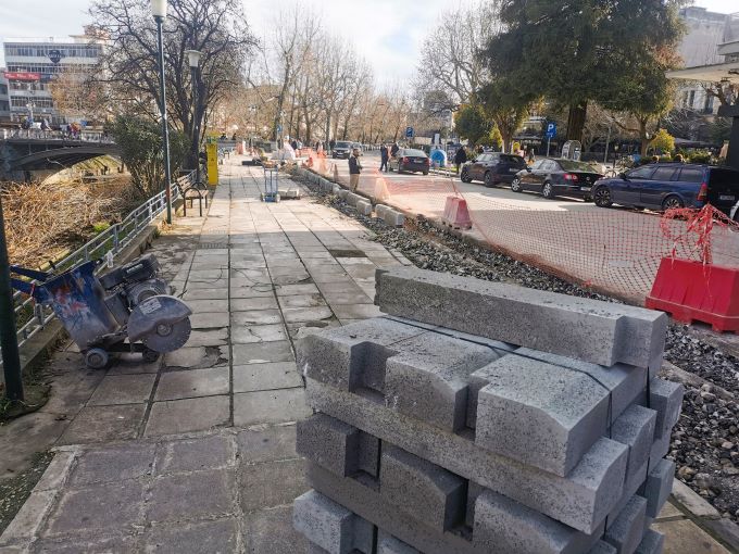 Σε πρώτη φάση γίνονται οι εργασίες στα πεζοδρόμια από την πλευρά του ποταμού, από το
