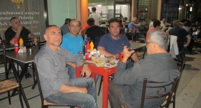 Στην φωτό που αποθανάτισε το trikaladsay εικονίζονται ομοτράπεζοι παλιοί φίλοι και συγκεκριμένα ο Στέφανος Μπλάνας που εργάζεται στη Γερμανία, ο Κώστας Τσίντζηρας ή άλλως πως Κακαβούλας, ο Αχιλλέας Διβάνης και ο ιδιοκτήτης του κεμπαπάδικου Βασίλης Ταμπάκος.