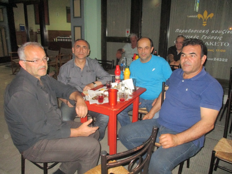 Στην φωτό που αποθανάτισε το trikaladsay εικονίζονται ομοτράπεζοι παλιοί φίλοι και συγκεκριμένα ο Στέφανος Μπλάνας που εργάζεται στη Γερμανία, ο Κώστας Τσίντζηρας ή άλλως πως Κακαβούλας, ο Αχιλλέας Διβάνης και ο ιδιοκτήτης του κεμπαπάδικου Βασίλης Ταμπάκος.