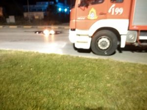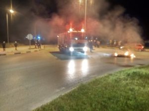 Στο σημείο έσπευσαν ισχυρές αστυνομικές δυνάμεις, διεκόπη η κυκλοφορία των οχημάτων, ενώ η Πυροσβεστική έσβησε τις φωτιές που είχαν ανάψει χρησιμοποιώντας παλιά ελαστικά.