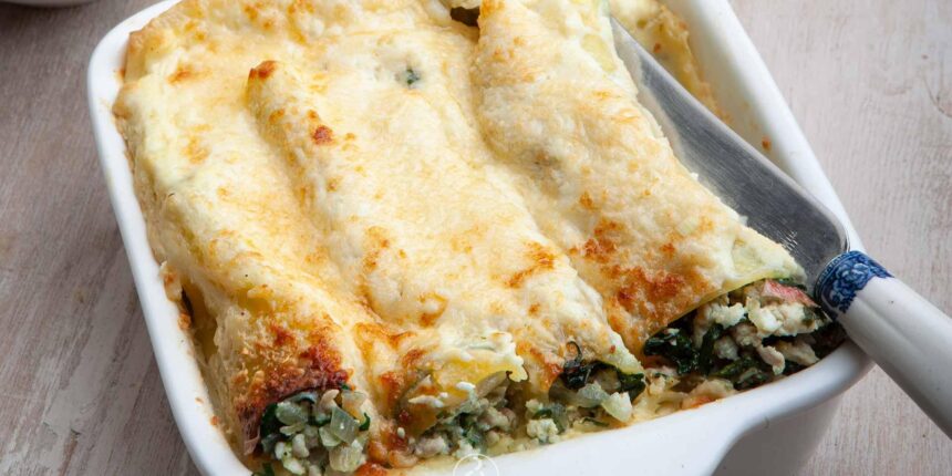 Γεμίζουμε 1-1 τα κανελόνια με την γέμιση.