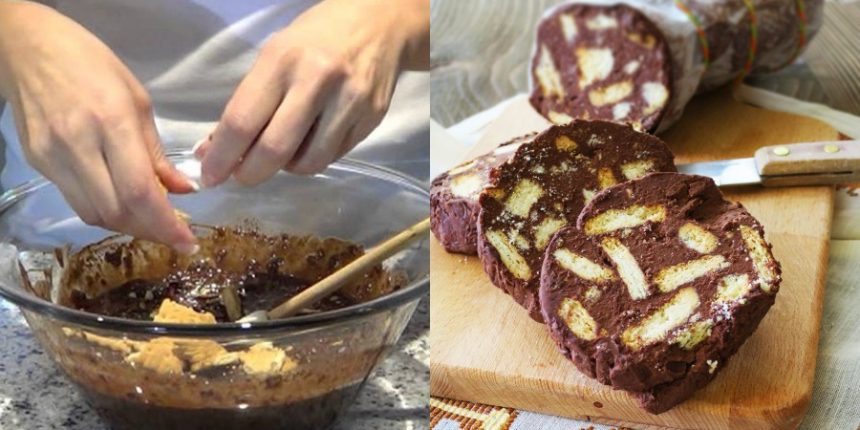 – Ρίξε το μείγμα σε ένα κομμάτι αντικολλητικό χαρτί και δώσε του μακρόστενο σχήμα.