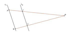 τρίγωνα, μπορεί να μετρηθεί η απόσταση μιας «απρόσιτης» θέσης, δηλαδή