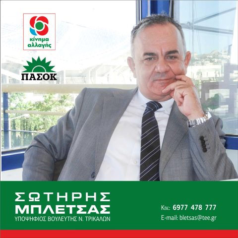 Ο Σωτ. Μπλέτσας είναι υποψήφιος βουλευτής του ΚΙΝ.ΑΛ στην εκλογική περιφέρεια Τρικάλων.