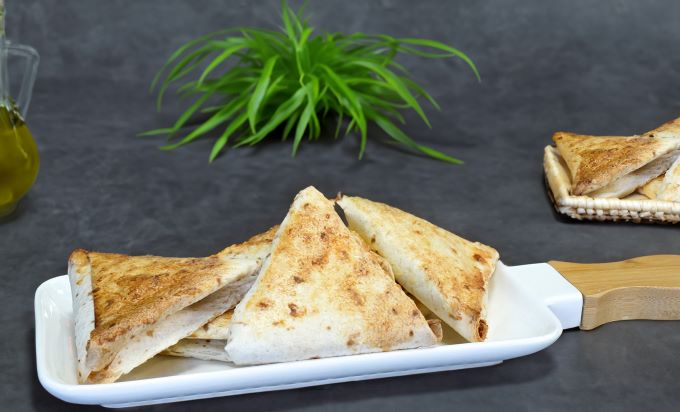 - Κλείνουμε σε τρίγωνα τα Ζαμπονοτυροπιτάκια και επαναλαμβάνουμε τη διαδικασία.